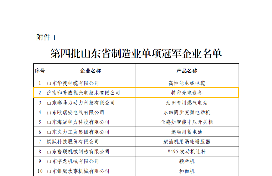 近日,山東省工業和信息化廳、山東省工業經濟聯合會公布了第四批山東省制造業單項冠軍企業名單,和普威視榜上有名!